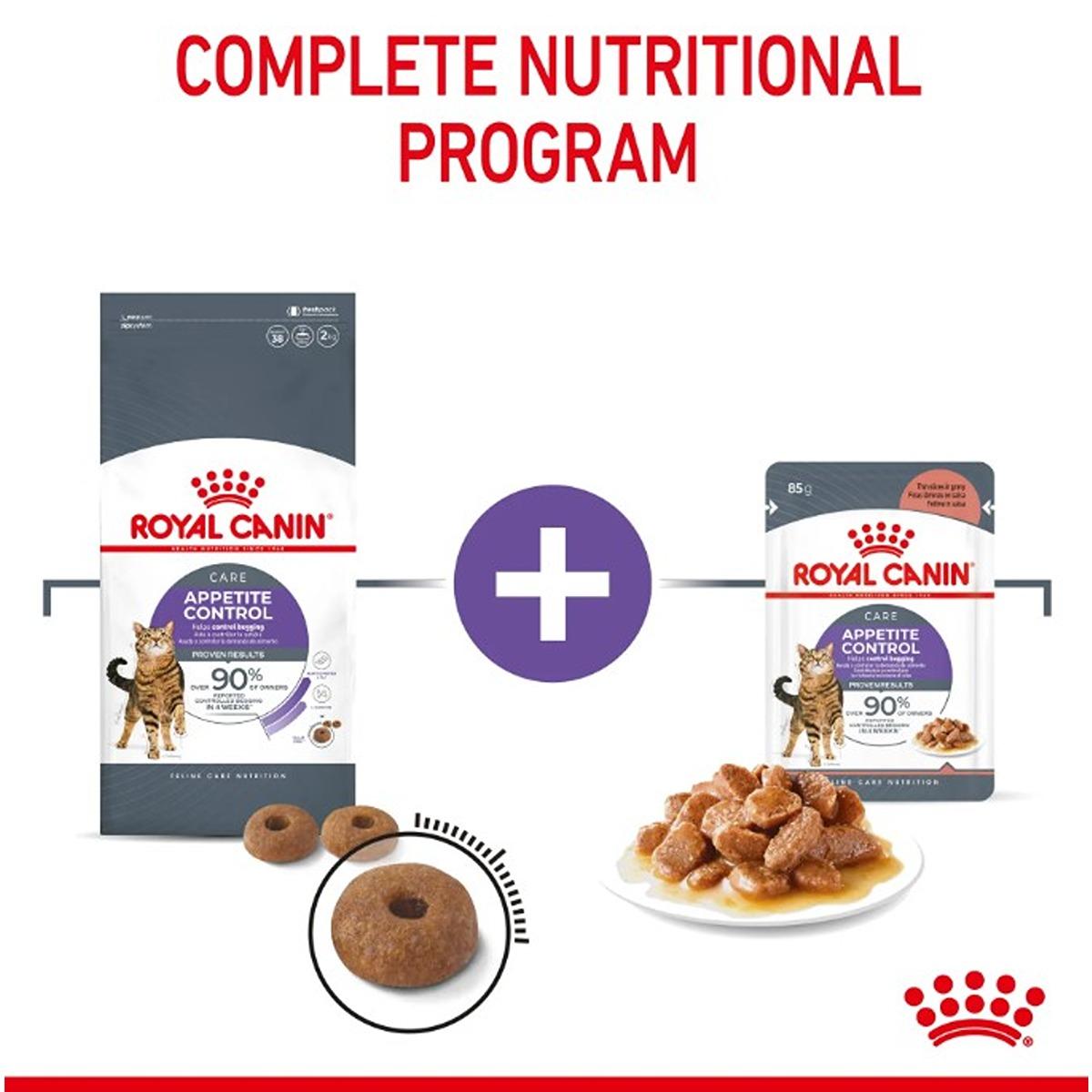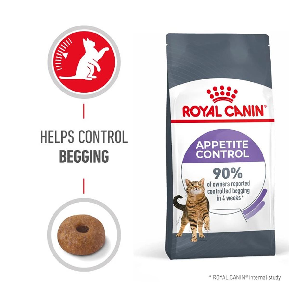 DOES YOUR CAT OFTEN BEG FOR FOOD BETWEEN MEALS? When cats beg for food and have easy access to it, they have a tendency to gain weight, which can negatively impact their health. Nutrition can play a role in helping reduce the feeling of hunger and maintaining a healthy weight. Royal Canin Appetite Control is a premium dry cat food crafted with moderate fat* and energy content* that helps your cat to stay fit. Over 90% of owners reported controlled begging behaviour between meals in 4 weeks, when their cats were fed with ROYAL CANIN® APPETITE CONTROL CARE dry and wet formulas.** *Compared to a high-quality maintenance food.**Royal Canin internal study