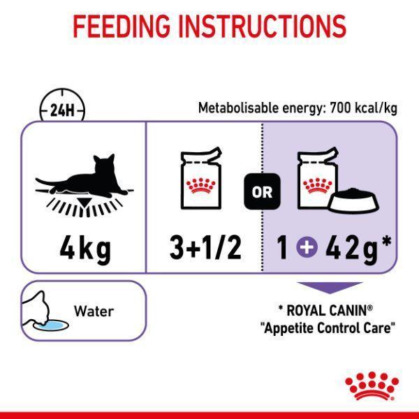 DOES YOUR CAT OFTEN BEG FOR FOOD BETWEEN MEALS? When cats beg for food and have easy access to it, they have a tendency to gain weight, which can negatively impact their health. Nutrition can play a role in helping reduce the feeling of hunger and maintaining a healthy weight. ROYAL CANIN® APPETITE CONTROL is a premium wet cat food precisely balanced with adapted protein and fat levels for healthy weight maintenance. Over 90% of owners reported controlled begging behaviour between meals in 4 weeks, when their cats were fed with ROYAL CANIN® APPETITE CONTROL CARE dry and wet formulas.**