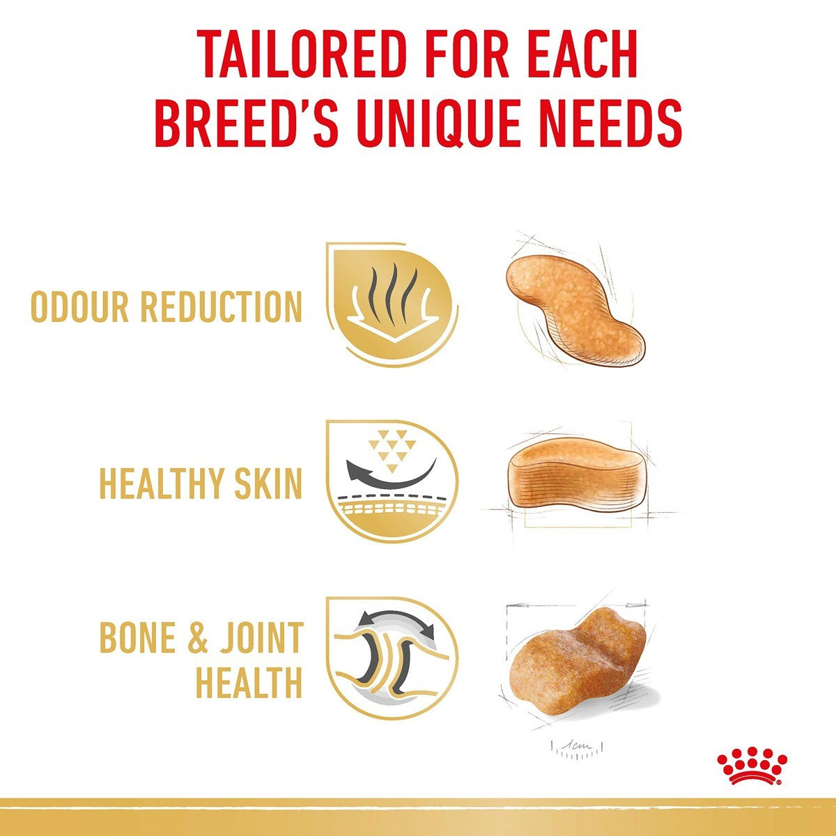 ROYAL CANIN Bulldog Adult is formulated with Omega-3 fatty acids EPA and DHA. which can help to support joint health. It is also adapted to assist in maintaining an ideal weight.