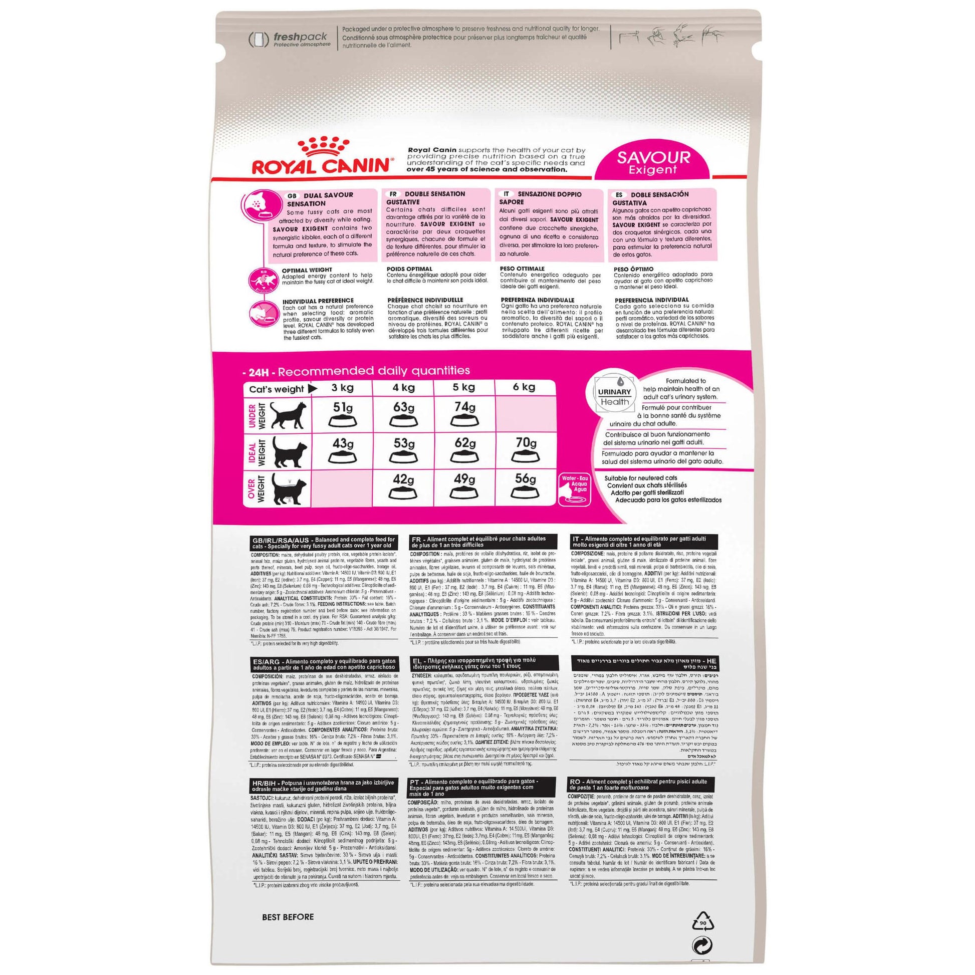 Some cats have fussy appetites and might refuse to eat the food you give them. However, this behaviour is not an inherent trait in cats and can therefore be rectified by selecting food that not only contains healthy nutrients, but that also appeals to your cat's particular appetite. Some cats that exhibit signs of fussiness are attracted by diversity in the food bowl. To stimulate your cat's natural preference, Savour Exigent contains two synergistic types of kibbles, each with a different formula and texture to enhance dual savour sensation in even the fussiest of cats. What's more, the specifically adapted energy content in Royal Canin Savour Exigent helps to maintain the ideal body weight of an adult cat like yours. Suitable for both indoor and outdoor cats, Royal Canin Savour Exigent will continue to stimulate your cat's appetite and provide it with all the nutrients it needs to remain active and healthy.