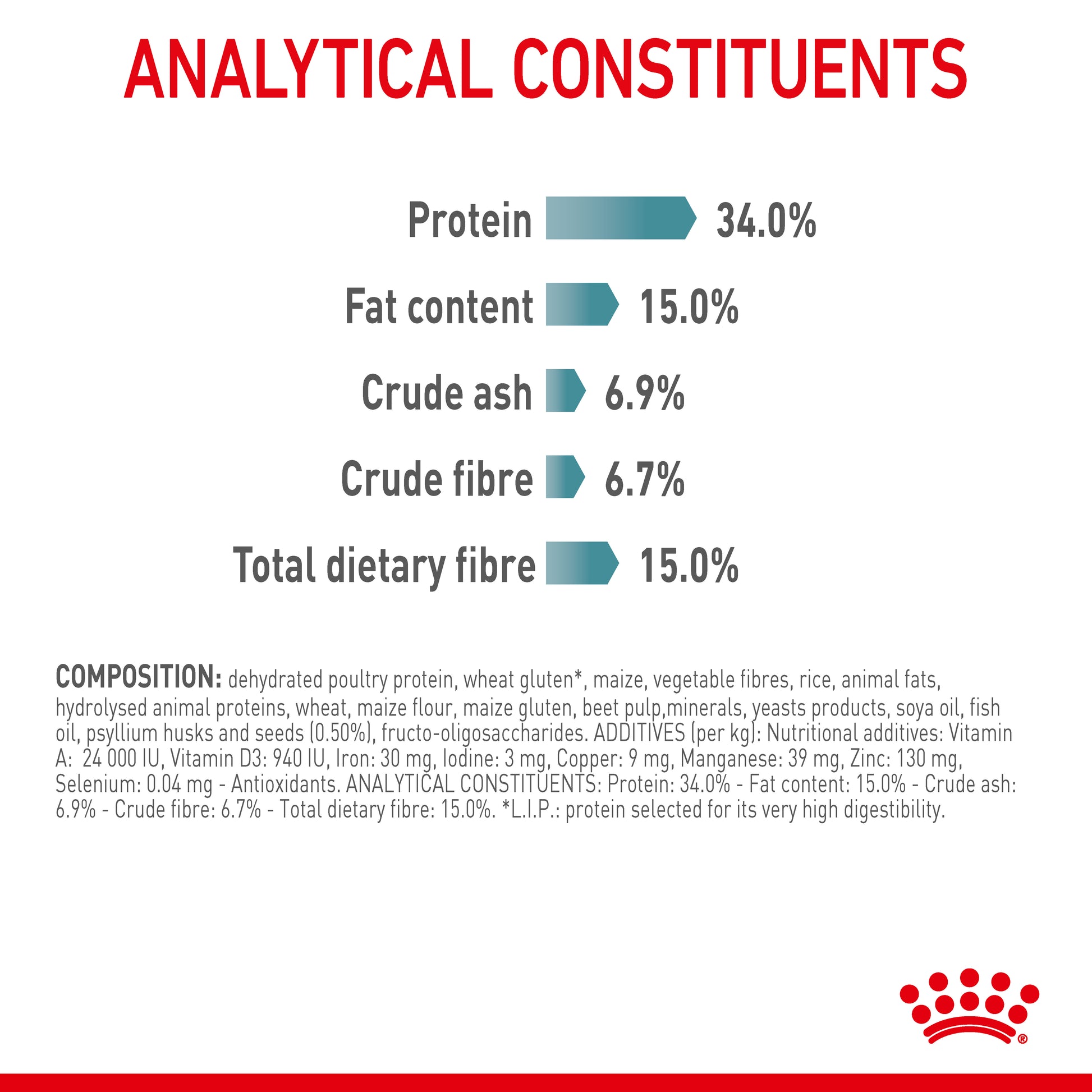 The exclusive use of ROYAL CANIN HAIRBALL CARE dry formula is proven to reduce hairball formation in 14 days.* The specially formulated HAIRBALL CARE complex is composed of a specific blend of natural dietary fibres, including psyllium, to help naturally stimulate intestinal transit. As a consequence, hair swallowed daily can be eliminated in the stools, rather than building up in the stomach and being regurgitated.