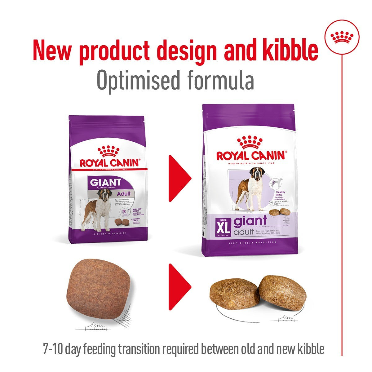 ROYAL CANIN Giant Adult is a nutritionally complete and balanced formula specially designed to meet your giant dog’s particular needs and support them throughout their adult years. This diet is for extra-large dogs that weigh more than 45kg and are either over 18 or 24 months old.