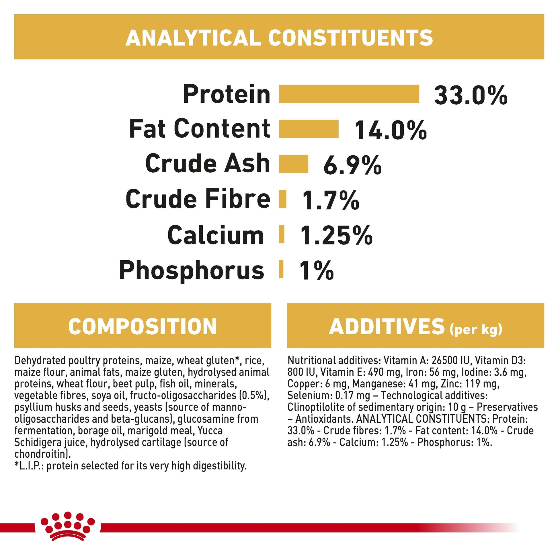 Because your puppy’s immune system develops gradually, ROYAL CANIN Labrador Retriever Puppy contains an exclusive complex of antioxidants – including vitamin E – to help support its natural defences during this key period of growth. Thanks to a specially adapted content of energy, protein, calcium and phosphorus, Royal Canin Labrador Retriever Puppy contributes to the healthy development of your growing puppy’s bone structure. It also helps to facilitate harmonious weight gain, to help your puppy maintain an ideal weight as it grows. ROYAL CANIN® Labrador Retriever Puppy contains a combination of nutrients with high quality protein (L.I.P.*) and prebiotics (FOS) to support digestive health and balance of intestinal flora. What’s more, they also help to contribute to good stool quality.
