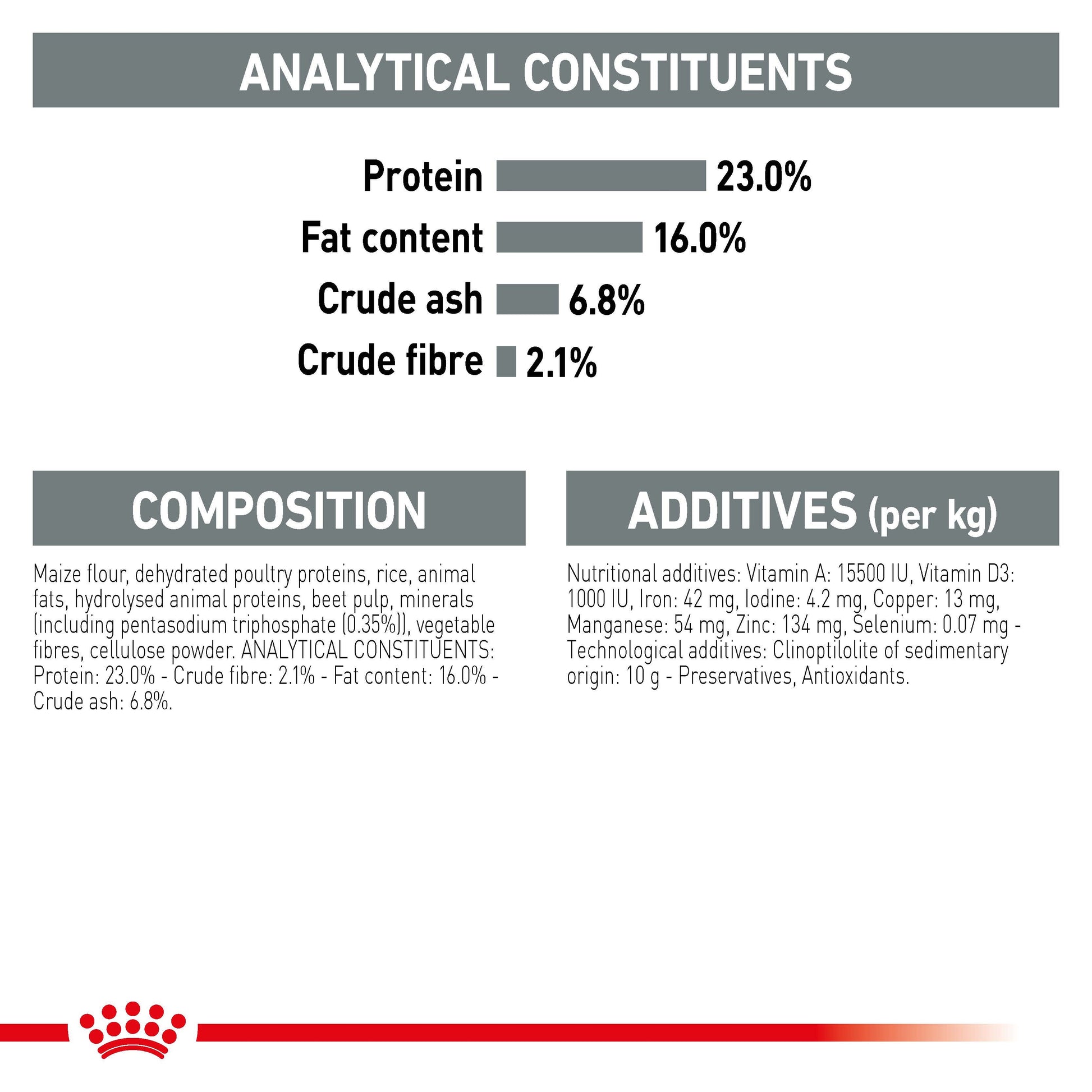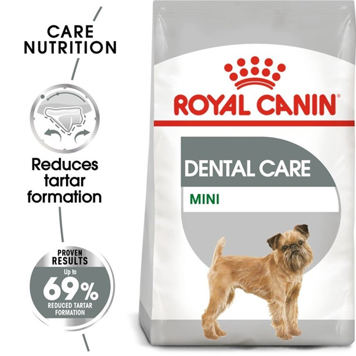 ROYAL CANIN® Dental Care Mini is suitable for dogs prone to dental sensitivities that weigh up to 10kg. This formula boasts delicious-tasting complete nutrition that helps to support your dog’s dental health. This advanced formula features a smart kibble texture that actually cleans your dog’s teeth while chewing. The mechanical texture of the kibble surrounds each tooth as your dog bites down so that every mouthful rubs against the tooth’s surface, with a brushing effect.