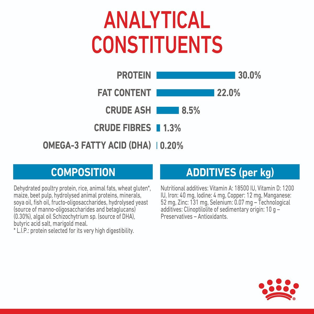 ROYAL CANIN Mini Starter Mother and Babydog is recommended for bitches during gestation and lactation and small breed puppies with a projected adult weight of up to 10kg from weaning - 2 months.