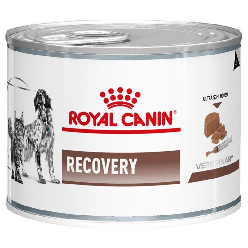 ROYAL CANIN recovery ultra soft mousse is a complete dietetic feed for cats and dogs, formulated to promote nutritional restoration and convalescence for feline hepatic lipidosis. High energy density, high concentrations of essential nutrients and highly digestible ingredients.