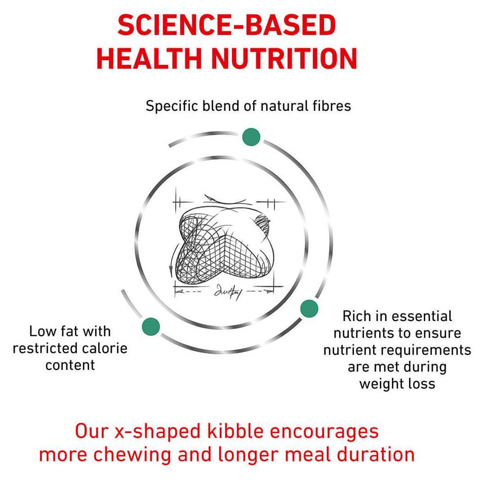 Royal Canin Vet Diet Satiety Weight Management is precisely formulated for safe and effective weight loss and successful long term weight management in dogs. The satietogenic effect of the specific fibre blend reduces the consumption of food and decreases undesirable begging behaviours. This promotes weight loss and long term weight management.