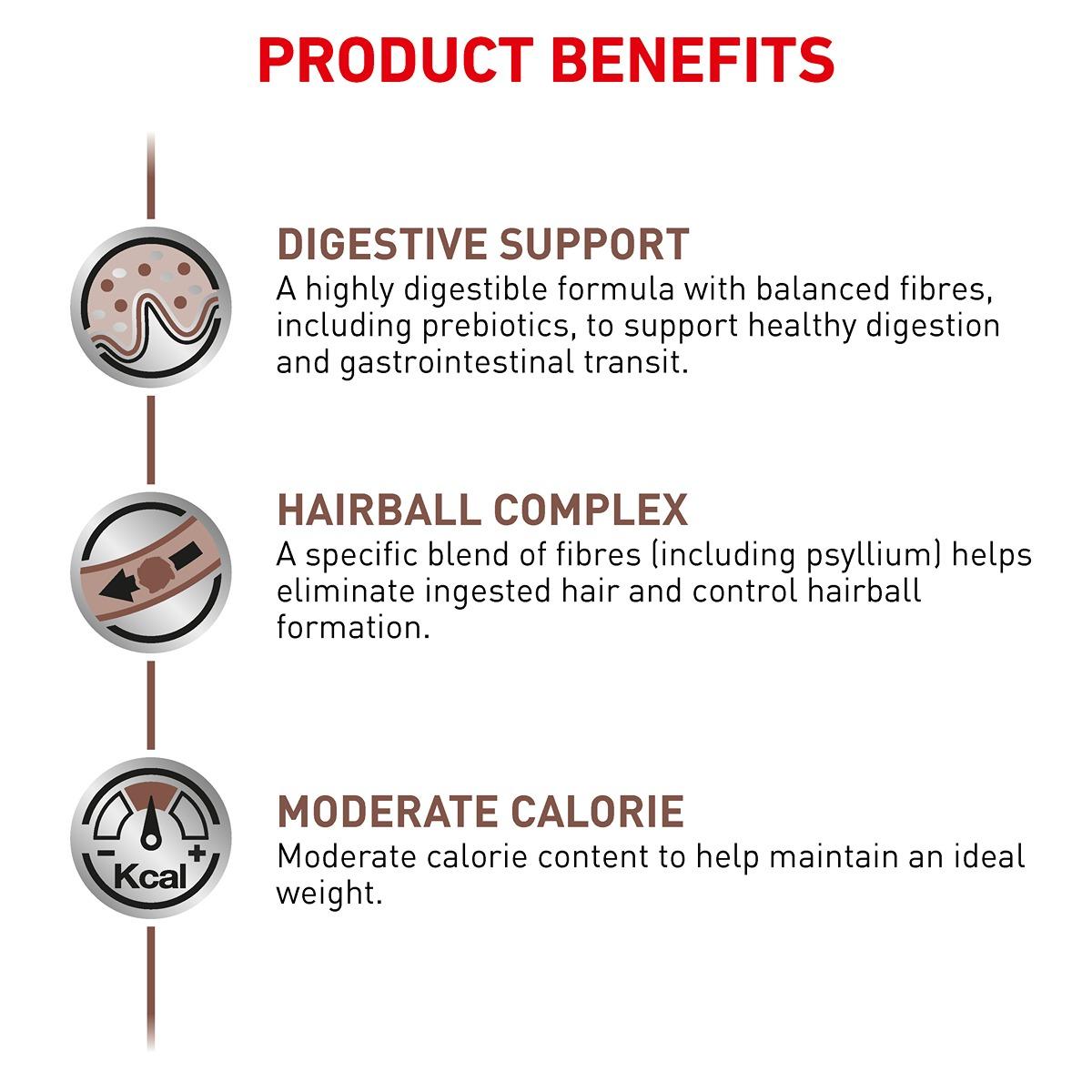 Formulated specially with Royal Canin's Hairball Complex & enriched with psyllium that enables your cat to eliminate a build up of hairballs in a natural way. As well as nutrients which help to maintain the natural barrier of the cat's skin.
