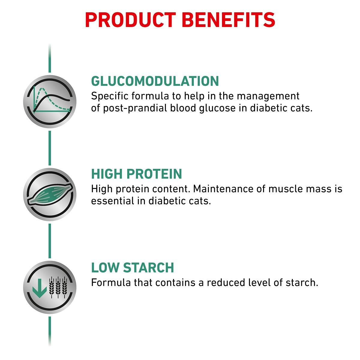Royal Canin Veterinary Diet Feline Diabetic is a complete dietetic feed that has been specially formulated to regulate glucose supply for diabetic cats. Royal Canin Feline Veterinary Diet has been designed to manage the blood-glucose level in diabetic cats, while also delivering the required nutrition they need to stay healthy.