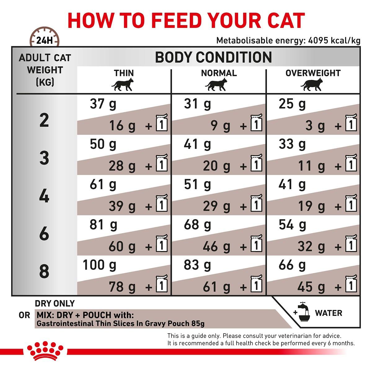 ROYAL CANIN Gastrointestinal is a precisely balanced, nutritious diet that is specifically formulated to help support your cat’s digestive health in cases of acute and chronic diarrhoea, maldigestion, or similar gastrointestinal sensitivities.