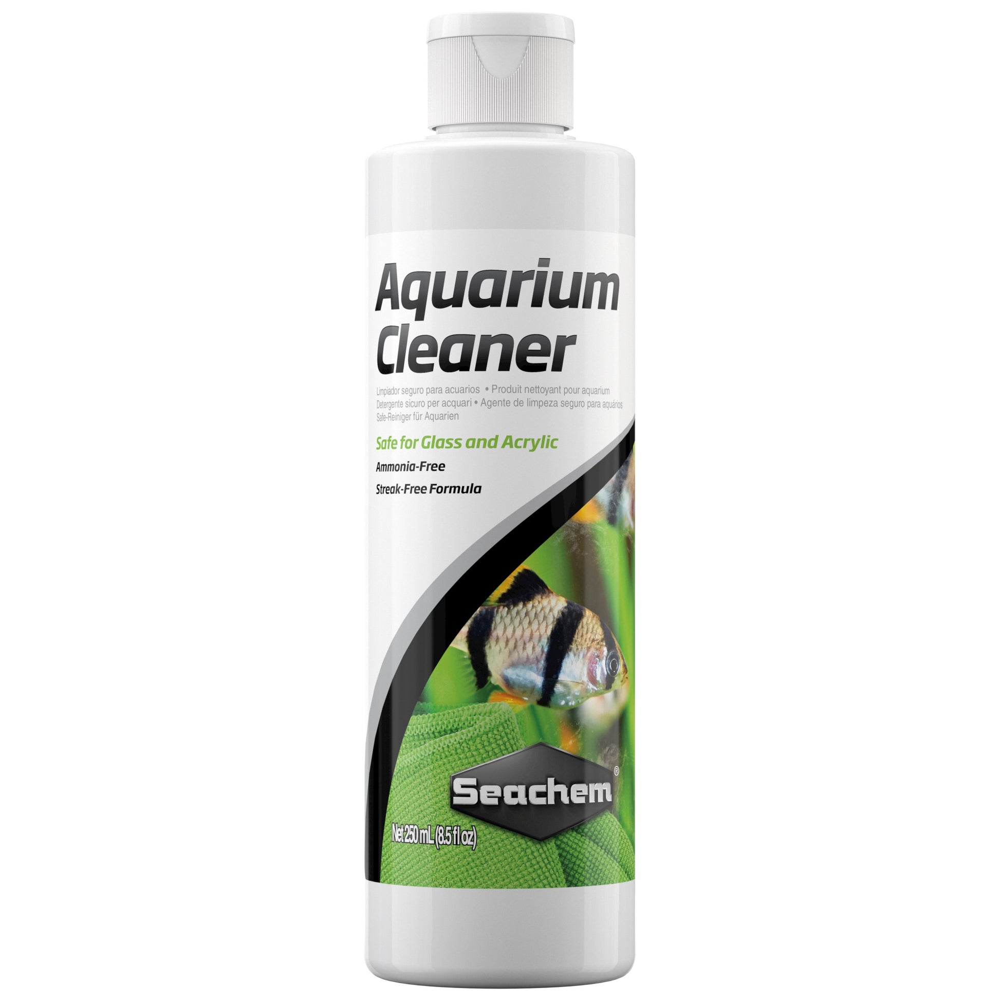 Directions: Lightly pour small amounts of Seachem Aquarium Cleaner onto a cleaning cloth and wipe aquarium glass or other external surfaces clean. Repeat as necessary. For best results, use a lint free cloth.