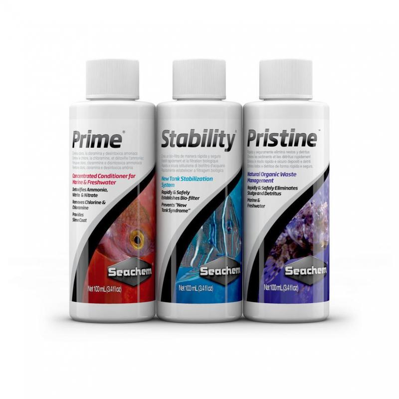 SureStart™ conditioners pack combines 3 of Seachem's top-selling items, Prime®, Stability®, and Pristine™, into one convenient pack. Each plays an important role in initial set-up and maintenance of any aquarium. It’s great for any aquarist but is ideal for the beginner.