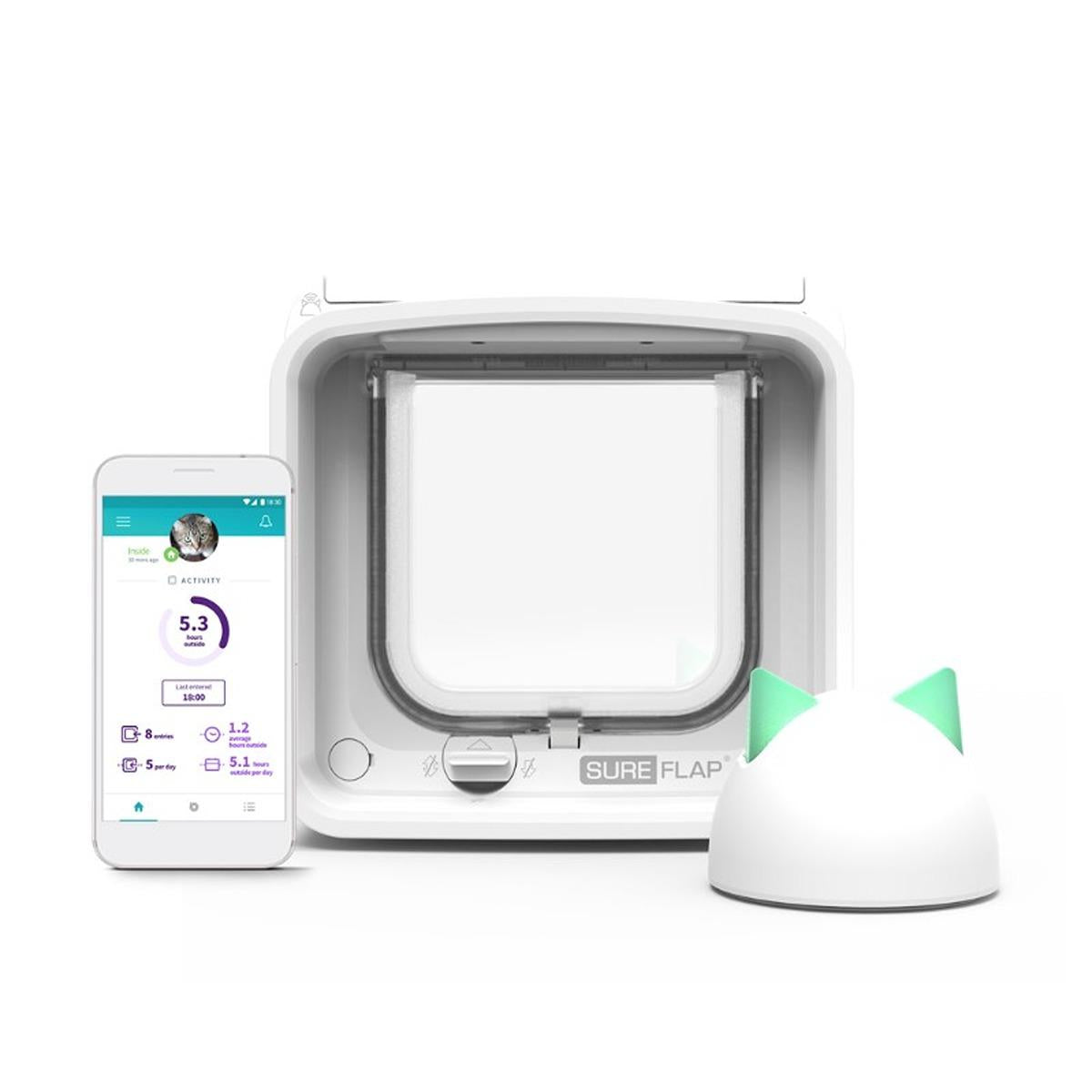 The SureFlap Microchip Cat Flap Connect is an app controlled cat flap which is perfect for homes with multiple cats. Using the Sure Petcare app, curfew modes (lock/unlock time), receive notifications when your pet enters or leaves, lock/unlock the door at any time and monitor changes in behaviour over time. Great for homes where you need to keep a certain pet in at certain times (eg vet visits or a new kitten). Other cats can still come and go while the indoor cat stays put. Connection to the Sure Petcare app requires the Sure Petcare hub (sold separately).