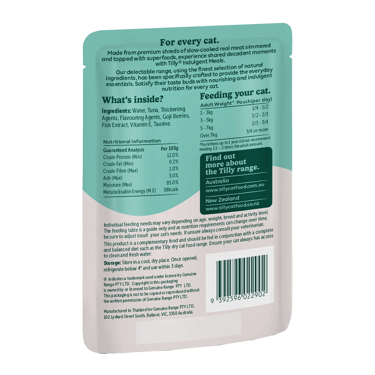 Made from premium shreds of slow-cooked tuna simmered and topped with goji berries, experience shared decadent moments with Tilly Indulgent Meals. Our delectable range, using the finest selection of natural ingredients, has been specifically crafted to provide the everyday essentials. Satisfy their taste buds with nourishing and indulgent nutrition for every cat.
