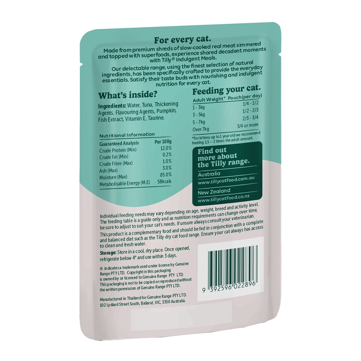 A complementary food, this product should be fed in conjunction with a complete and balanced diet such as the Tilly Dry Cat Food range.