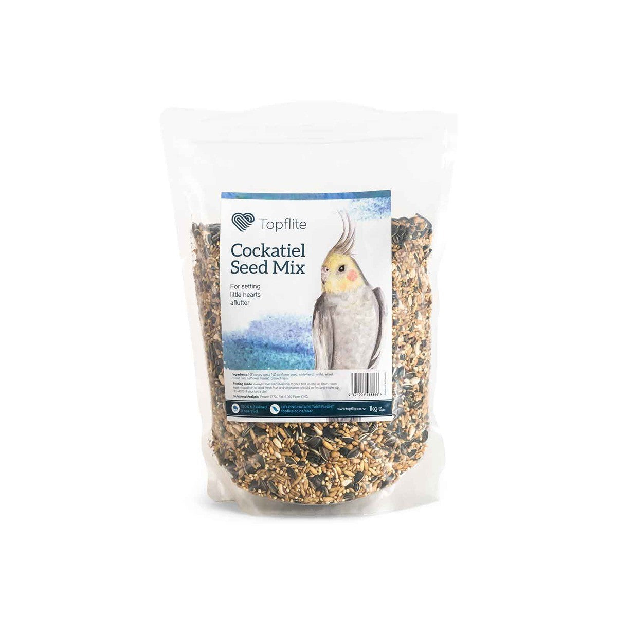 The Topflite Cockatiel Mix is a high-quality blend of natural ingredients, including white French millet, which provides a variety of essential minerals. We also include New Zealand sunflower seeds and canary seeds to deliver fats and protein throughout the seasons.
