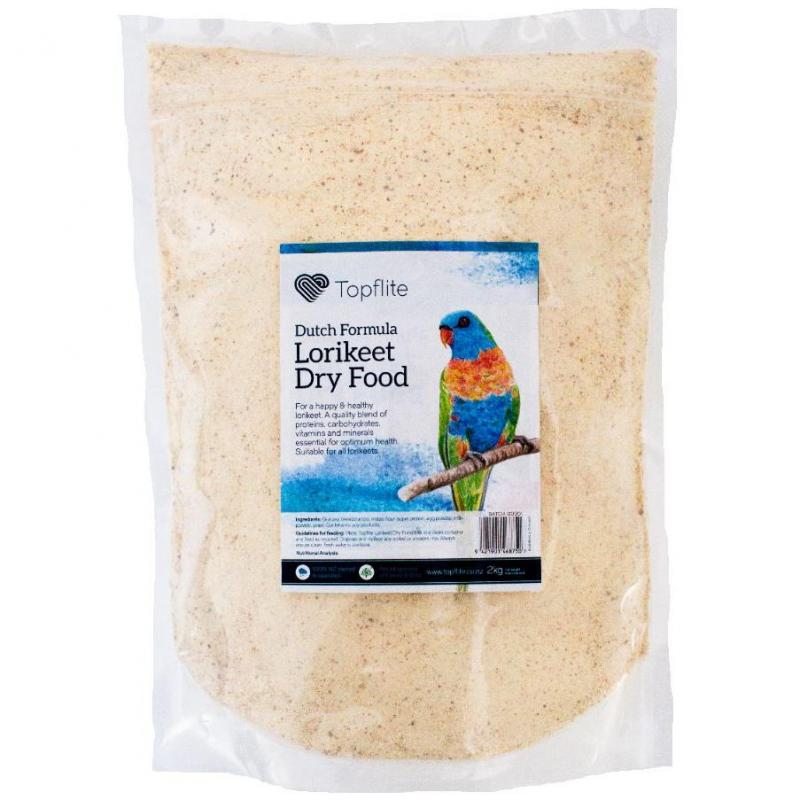 Lorikeet Dry is a balanced blend of protein, carbohydrates and vitamins. Like all Topflite products, it contains the highest quality ingredients and no fillers or funny stuff like soy products. And, importantly, it won’t spoil unless it becomes wet or contaminated by bird droppings.