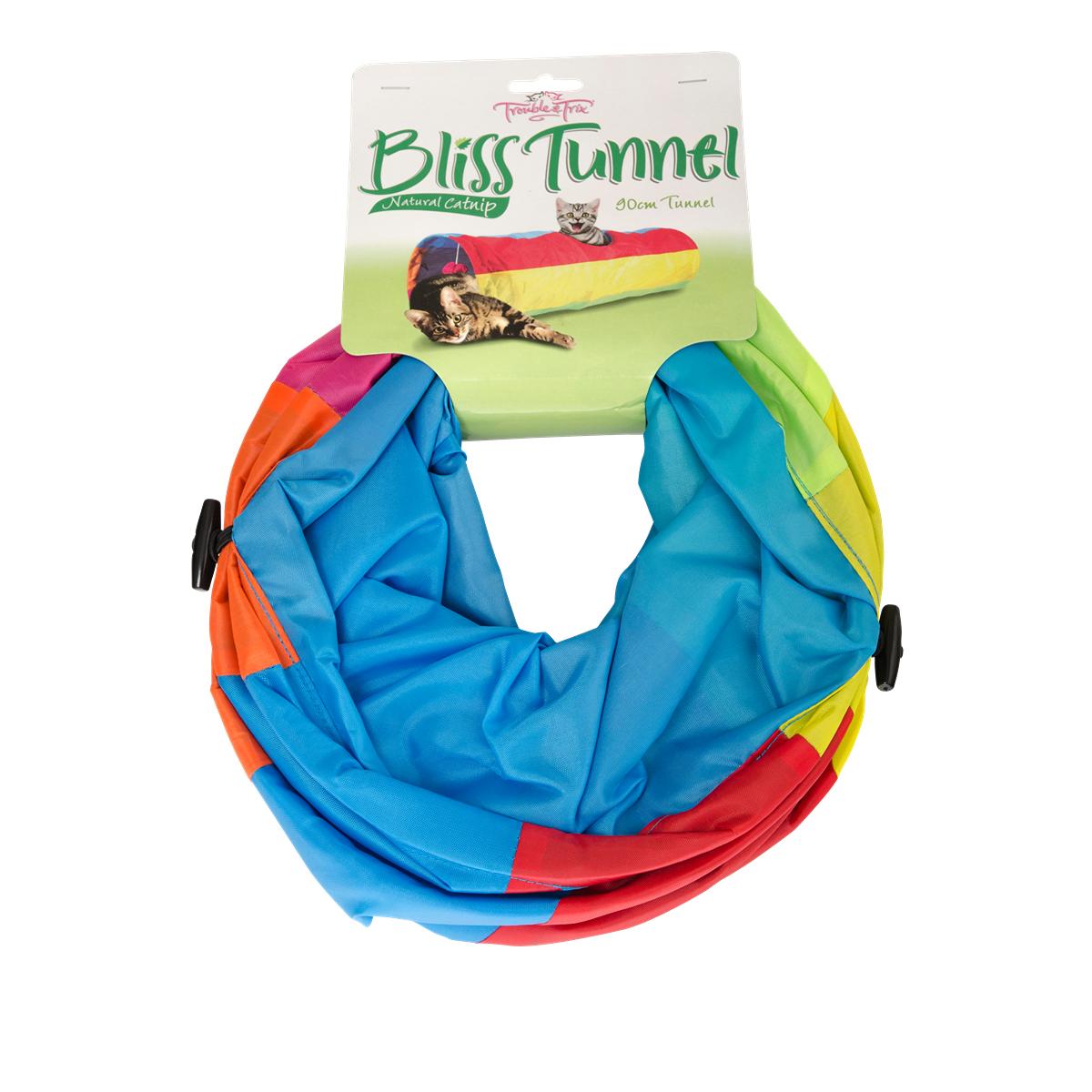 The Trouble & Trix Bliss Tunnel is created from crinkly material which makes noise as the cat moves along inside. Hanging inside is a ball which includes the best naturally sun-dried catnip for even more fun.