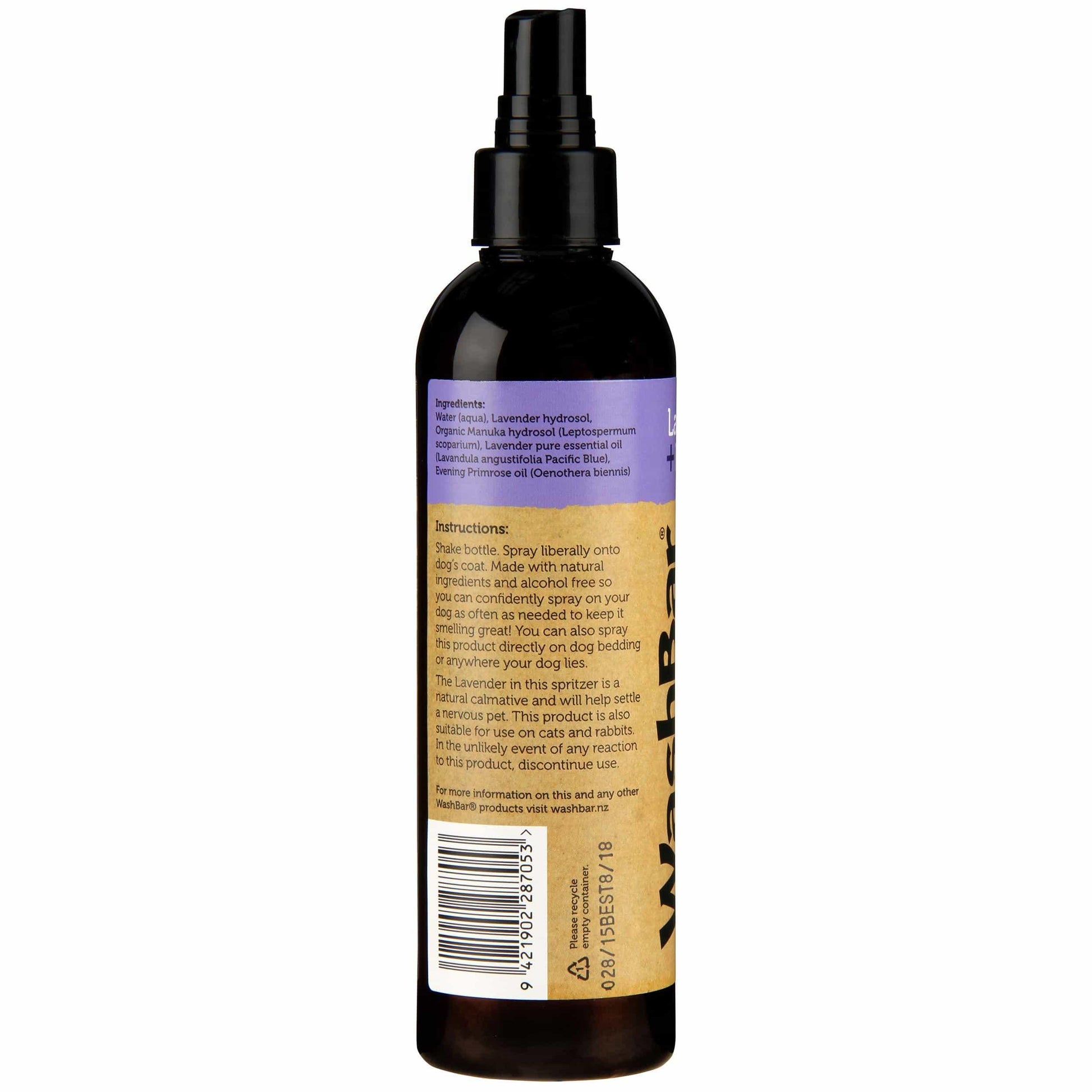 The WashBar Lavender & Primrose Daily Spritzer helps to keep your dog smelling fresh between washes while helping to nourish the skin and coat. Ideal for keeping the dog smelling fresh between baths, or to make your dog smell nice at the home or in the car, or when the dog smells and it’s too cold, too wet or simply too inconvenient to give it a wash –give it a quick spritz instead.