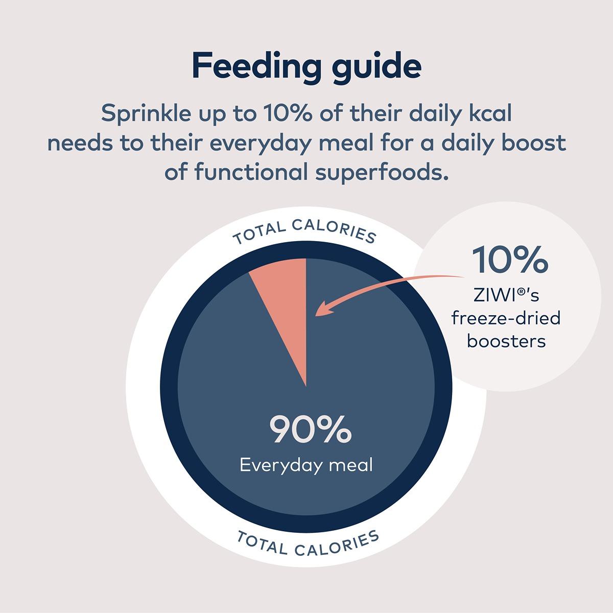 Boost their bowl with up to 10% Freeze-Dried Raw Superboost with Pure New Zealand Venison. Crafted with just a handful of nature’s best ingredients. 98% grass-fed New Zealand venison and organs and a 50% Z-BOOST® superfood blend of cold-washed green tripe, New Zealand green mussels, and organic kelp – this raw-inspired, gently freeze-dried tasty booster is perfect for your cat's daily meal. This simple recipe is the perfect daily booster for all life stages and breeds, including kittens and senior cats. Supports overall health and wellness and full of lip-licking nutrition.